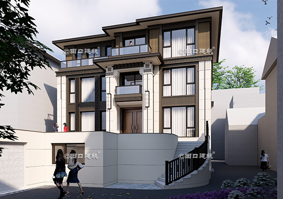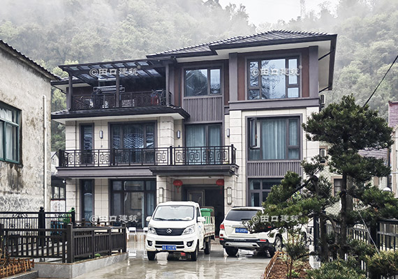 占地面積 134.8㎡ 土建造價 45.0萬 三層中式田園風格別墅